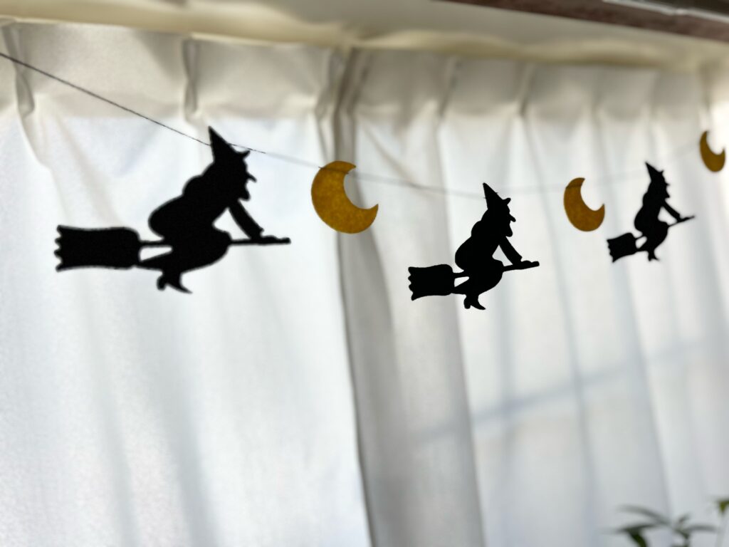 小さなガボチャ🎃を飾ったり、魔女を窓際に吊ってみたり🧙♀️
