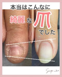 深爪を本来持っている爪の形、健康的な爪質へ変え、美しい爪へ導いていきます